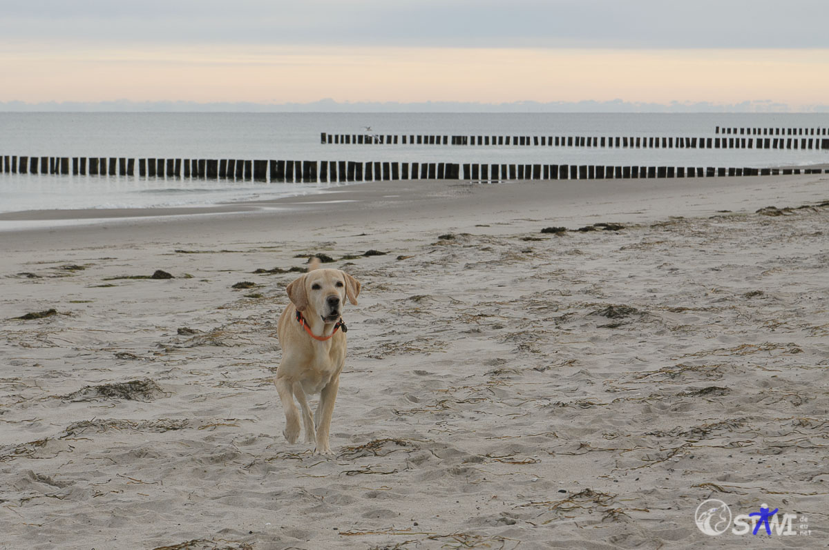 Irgendwann standen wir wieder. Der kleine und große Mann stiegen aus. Nun durfte ich auch wieder raus. Ja, ein Spaziergang! Nur roch doch alles so fremd. Der Wind wehte um meine Nase und wir kamen an ein ganz großes, lautes Wasser. Endlich durfte ich mal wieder rennen. War zwar total dunkel, das Wasser schmeckte nicht, aber egal. Durch den Sand flitze ist cool. Wir machten eine schöne Runde und mir ging es gut.
